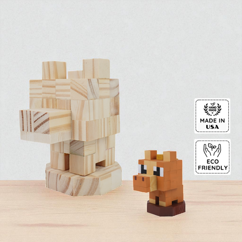 DIY Kit: Includes glue, paint set, and numbered wooden blocks for full assembly and painting.